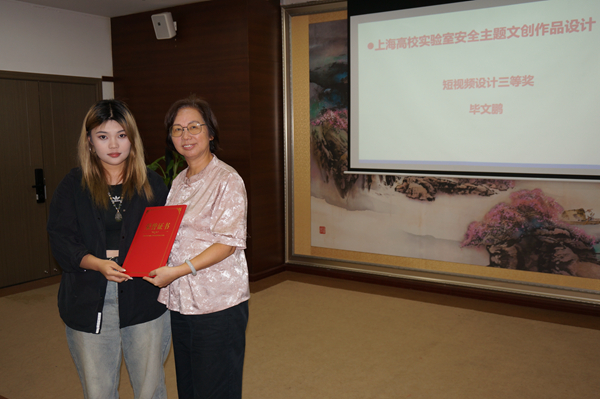 会议伊始,资产与实训室管理处介绍了学校近年来在实训室安全管理方面的工作成效,重点围绕实训室安全案例征集工作的背景、要求和进展情况作了详细说明。随后,举行了简朴而庄重的颁奖仪式,为在2024年度上海高校实验室安全工作优秀案例征集和实验室安全主题文创作品设计比赛中获奖的师生代表颁发了荣誉证书,充分肯定他们在学校实训室安全文化建设中的积极贡献。